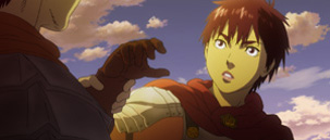 Нынешний цикл полнометражных фильмов — второй подход японских аниматоров к произведению (первым был ТВ-сериал 1997 года); на сей раз крупнобюджетная экранизация охватит, по меньшей мере, всю сюжетную арку «Золотой век». Известная множеством непохожих друг на друга, но всегда раздвигающих рамки анимационного искусства работ («Воспоминания о будущем», «Железобетон», «Первый отряд: момент истины»), Studio 4°C выбрала для фильма технологию, сочетающую компьютерную и рисованную анимацию. Вкупе с мастерством художников и темпераментом режиссера это позволило воплотить на экране уникальные по хореографии массовые сцены битв и близкую борьбу непростых характеров, созданных одним из самых уважаемых японских авторов, работающих в жанре фэнтези — Кэнтаро Миурой.